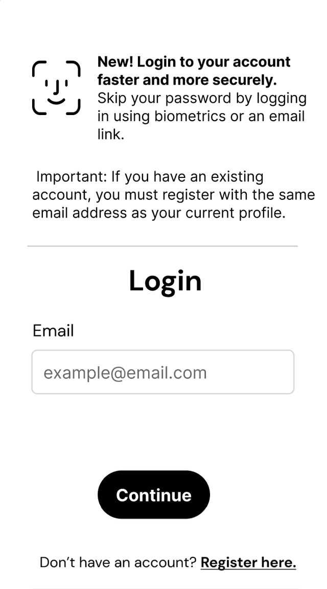 Regardless of which approach you take, communicating with your users is critical to ensuring a good experience and smooth transition. We recommend including a quick intro on your login and registration pages to explain the change. Here’s an example: